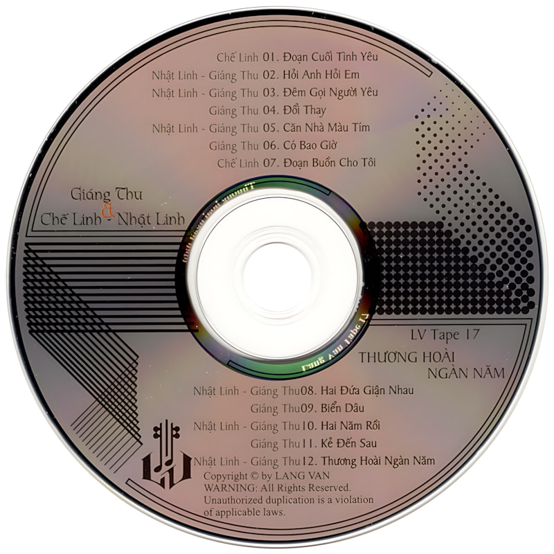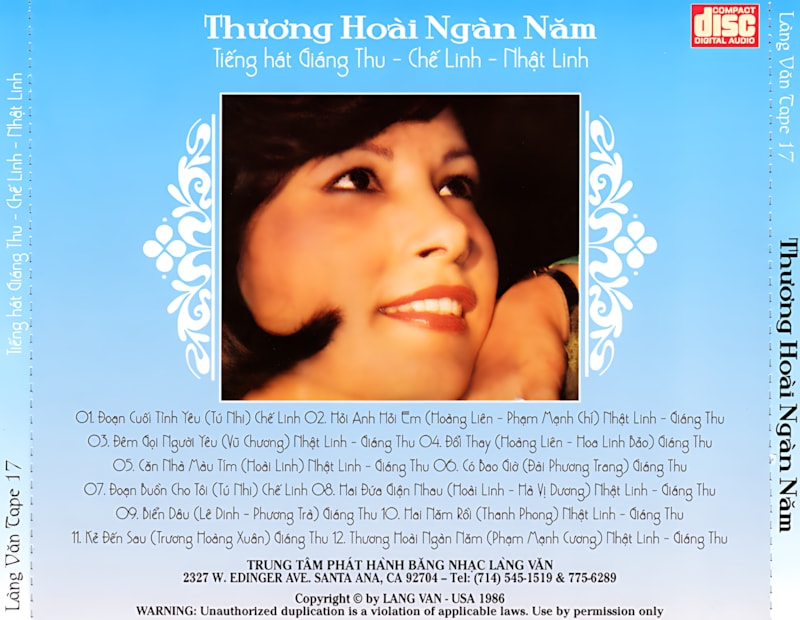 Album Thương Hoài Ngàn Năm (Làng Văn 17) quy tụ giọng ca chính Giáng Thu cùng sự góp mặt của Chế Linh và Nhật Linh. Với những bản tình ca bất hủ như Đêm Gọi Người Yêu, Căn Nhà Màu Tím, Bên Đời Hiu Quạnh, album mang đậm chất nhạc vàng trữ tình sâu lắng, khắc họa nỗi nhớ thương trải dài theo năm tháng.