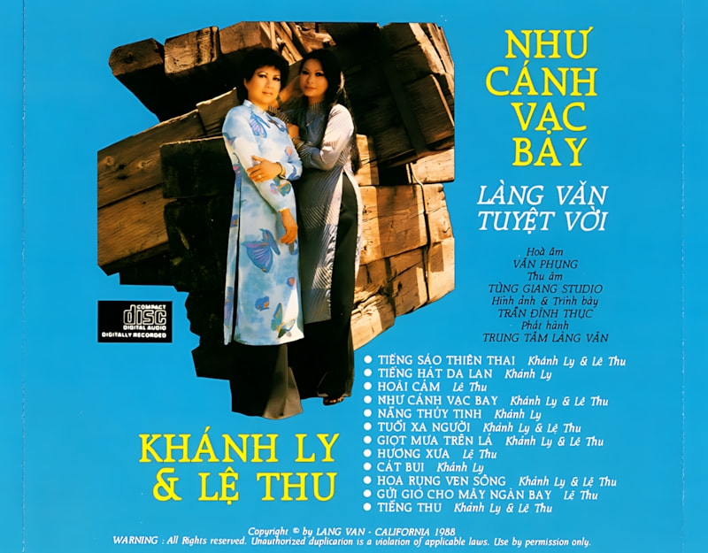 Album Như Cánh Vạc Bay (Làng Văn 32) là sự kết hợp hiếm có giữa hai giọng ca hàng đầu Khánh Ly và Lệ Thu, cùng hòa quyện trong những tình khúc sâu lắng và trữ tình. Với hòa âm của Văn Phụng, album mang đậm phong cách nhạc xưa, nhẹ nhàng nhưng đầy cảm xúc, ghi dấu ấn trong lòng người yêu nhạc Việt hải ngoại.