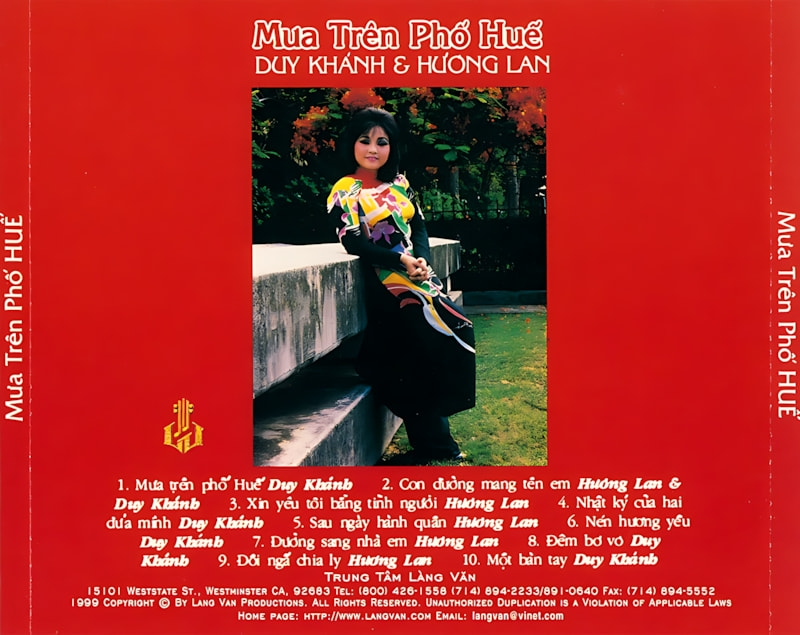 Album Mưa Trên Phố Huế (Làng Văn 41) đánh dấu sự kết hợp giữa hai giọng ca lớn của nền tân nhạc Việt Nam – Duy Khánh và Hương Lan. Với âm hưởng trữ tình quê hương sâu lắng, album mang đến những ca khúc gợi nhớ miền Trung yêu dấu, hòa quyện giữa hoài niệm và nỗi buồn man mác trong từng giai điệu.