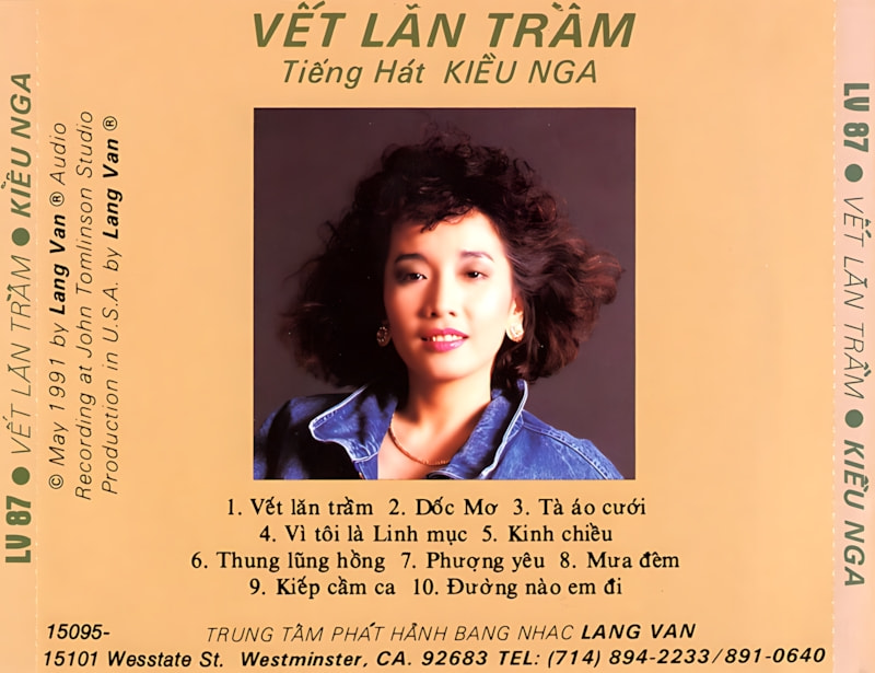 Album "Vết Lăn Trầm" của Làng Văn phát hành năm 1991. Đây là album gồm 10 ca khúc với giọng hát lãng đãng và giàu cảm xúc của Kiều Nga, thể hiện những chủ đề về nỗi buồn, kỷ niệm tình yêu trong dòng nhạc trữ tình hải ngoại thời đầu thập niên 90.
