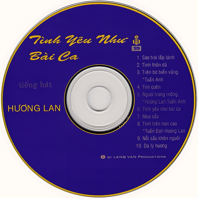Album “Tình Yêu Như Bài Ca” là một tuyển tập trữ tình của Hương Lan do Làng Văn phát hành. Với 10 ca khúc, album mang lại hình ảnh một Hương Lan sâu lắng, nhẹ nhàng, như một khúc tình ca ngân vang giữa tâm hồn người nghe.