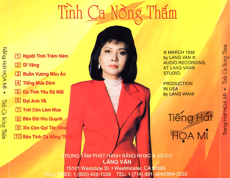 Album "Tình Ca Nồng Thắm" (Làng Văn 109) là một trong những tuyệt phẩm của danh ca Họa Mi, phát hành năm 1991 bởi Trung tâm Làng Văn. Với giọng hát ngọt ngào, sâu lắng đặc trưng, Họa Mi mang đến những tình khúc bolero trữ tình, gợi nỗi niềm hoài niệm về tình yêu và dĩ vãng. Album quy tụ các ca khúc kinh điển, khẳng định vị thế của bà trong dòng nhạc vàng hải ngoại, chạm đến trái tim bao thế hệ khán giả.