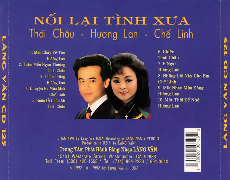 Album "Nối Lại Tình Xưa" (Làng Văn 125) là tuyệt phẩm song ca kinh điển đầu năm 1993, quy tụ ba giọng ca vàng Thái Châu, Hương Lan và Chế Linh. Với những bản tình ca bolero da diết, album gợi lên nỗi niềm hoài cổ, mong muốn nối lại tình xưa tan vỡ, làm tan chảy trái tim người nghe hải ngoại thời bấy giờ.